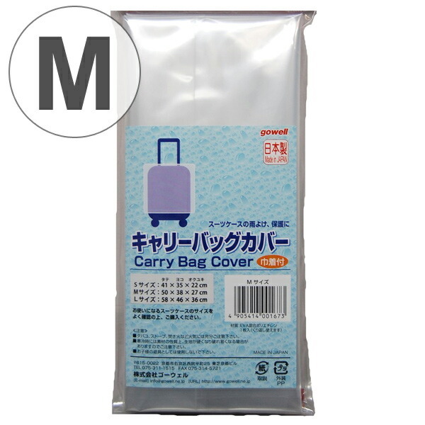 大切なスーツケースを雨から守るキャリーバッグカバーです。保管時のホコリよけ、傷防止の保護用にも最適です。出張、旅行時の持ち運びに便利な巾着付きです。繰り返しお使いいただけます。【商品詳細】 サイズ/約幅38×奥行27×高さ50cm ※高さは装着時の高さになります。 内容量/1枚 材質/EVA配合ポリエチレンフィルム 生産国/日本製 《LH921》