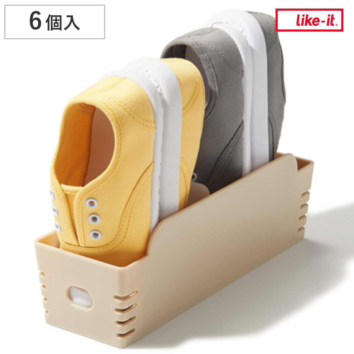 【ちびホルダー】6個入りベビーシューズから約18cmまでの子ども用の靴を2足収納できる【ちびホルダー】です。靴1足分のスペースに2足収納できるので、下駄箱・玄関に余裕が生まれます。