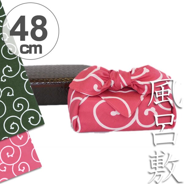お弁当を包むのに最適な48cmサイズのランチクロスです。丈夫で、家庭でも洗うことが出来る綿100%の素材を使用しています。「繁栄・長寿」めでたい意味のこもった、伝統的な唐草文様を現代風にアレンジしたデザインです。結び方次第で本のカバーや、ティッシュカバー、プレゼントのラッピングにもお使いいただけます。【商品詳細】 サイズ/約縦48×横48cm 内容量/1枚 材質/綿100% カラー/グリーン、ピンク 《唐草模様 袱紗 金封包み 弁当包み 弁当 包み 約 50 cm からくさ 唐草柄 緑 おしゃれ オシャレ 和柄 和モダン デザイン 贈答品 プレゼント コンパクト 小 小さめ 祝い事 中幅》