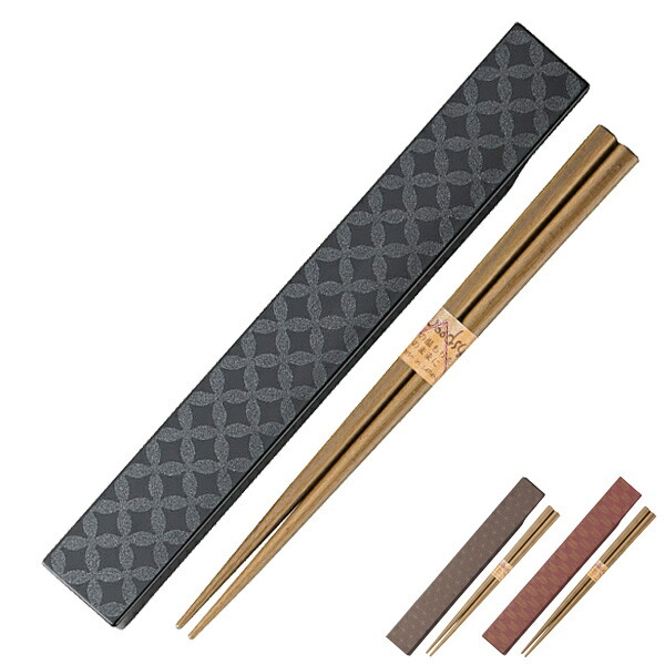●木の温もりをそのままにした天然木18cmのお箸と、和の文様が高級感のある箸箱のセットです。