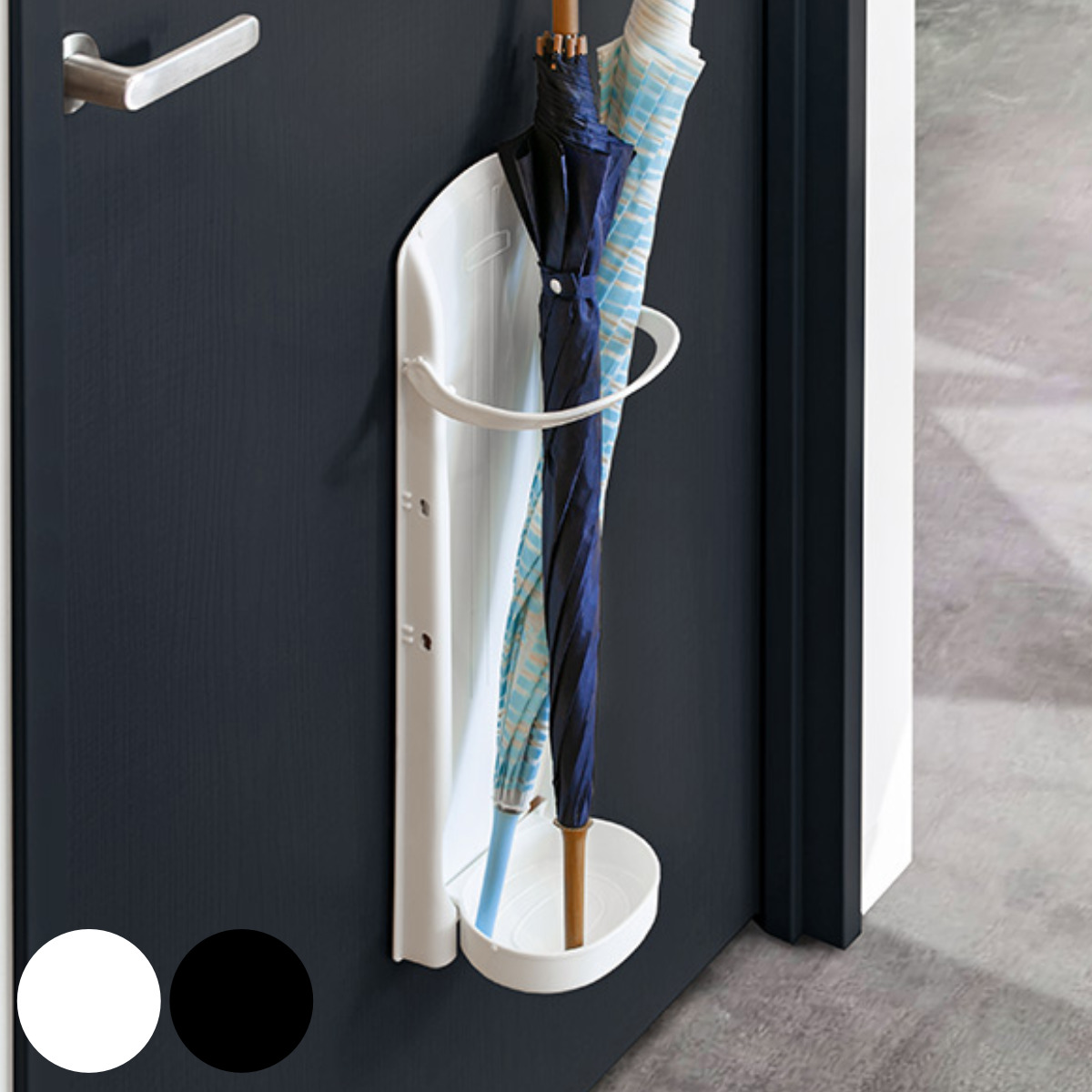●ドアに磁石でくっつけるタイプの傘立てです。