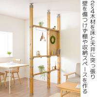| 注意事項 | ※木材は付属しておりません。 ※この商品は縦突っ張り専用です。横向きには使用しないでください。 ※下地のしっかりした場所に設置してください。下地の弱い所に設置すると転倒の原因となったり、天井を破損したりする恐れがあります。 ※傾斜した天井、床面には設置しないでください。転倒の原因になります。 ※柱に対し片側に荷重が掛かる場合は20kgまでとしてください。 ※商品ページ内には別の商品を含む画像を使用しています。 |