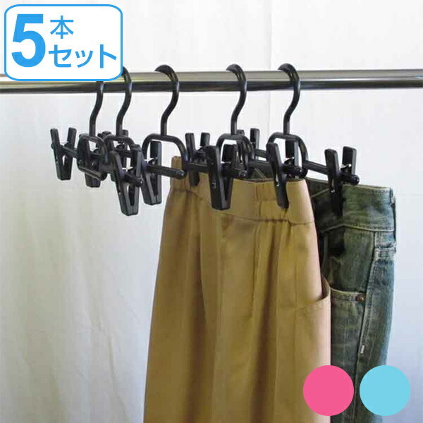 使いやすいシンプルなデザインのボトムハンガーです。スチール製バネを使用しており、2つのクリップでガッチリ掴むので、分厚いジーンズにもお使いいただけます。クリップが約13〜30cmまで左右にスライドして調節可能なので、大人用だけでなく、子供用のボトムやスカートもはさんで収納することができます。【商品詳細】 サイズ/約幅31×高さ15.5×厚み3cm 内容量/5本 材質/本体、クリップ:ポリプロピレン バネ:スチール カラー/ブラック、ピンク、ブルー 生産国/ベトナム製 《収納 ズボン スカート スラックス スラックスハンガー クリップ》