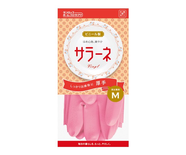 ビニール手袋 M 厚手 サラーネ ピンク ( 手袋 厚手手袋 抗菌加工 )