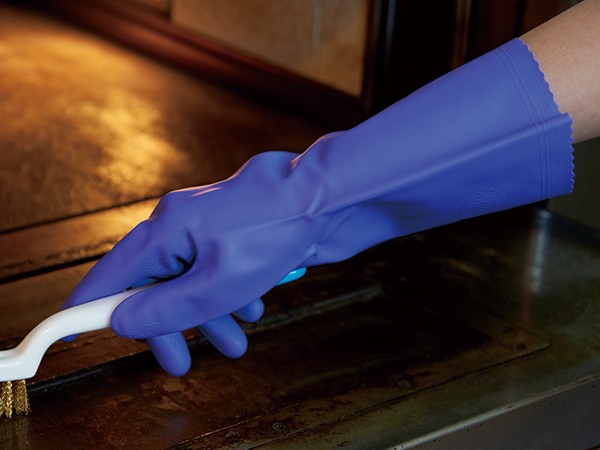 油汚れにも強く、丈夫な手袋抗菌加工を施しており、油や洗剤、薬品に強く、しっかりお掃除に適しています。