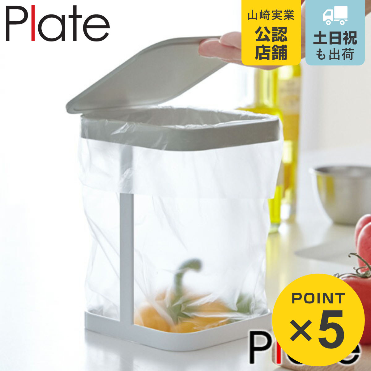 山崎実業 plate 蓋付きポリ袋エコホルダー プレート ホワイト ( 4903208033534 ポリ袋スタンド キッチン収納 ごみ箱 ダストボックス ポリ袋ホルダー )