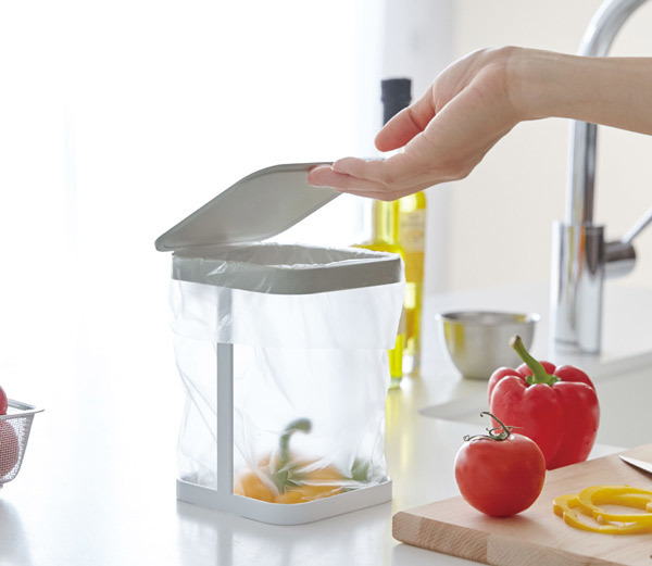 LH7324 エコホルダー エコスタンド 簡易ゴミ箱 キッチン 収納 キッチン用品 キッチン雑貨 エコ 生ごみ入れ 生ゴミ入れ コンパクト 簡単設置 かんたん カンタン におわない 臭わない 蓋付き フタ付き ごみばこ ゴミバコ ダストBOX 白 ホワイト スタイリッシュ おしゃれ お洒落 オシャレ プレートシリーズPlate