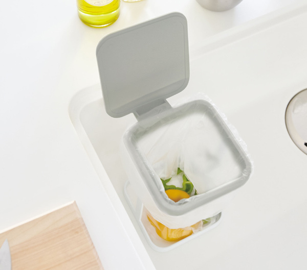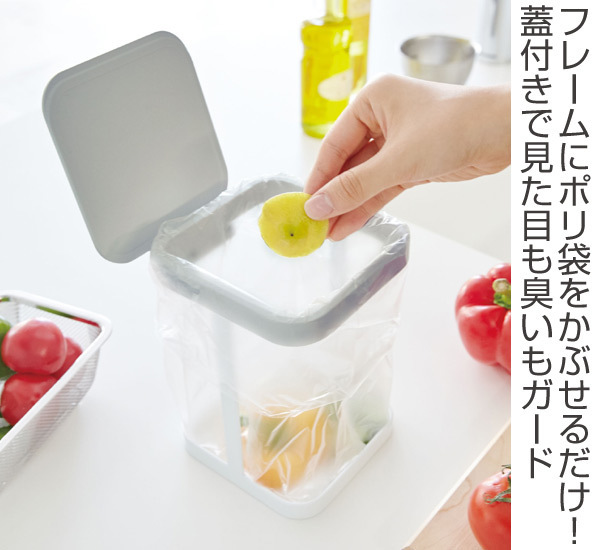 蓋付きなので上からゴミが見えず、臭いも軽減してくれます。また、蓋部分が本体フレームよりわずかに大きいつくりで指にしっかりかかるので、開閉しやすく調理中のストレスも軽減します。