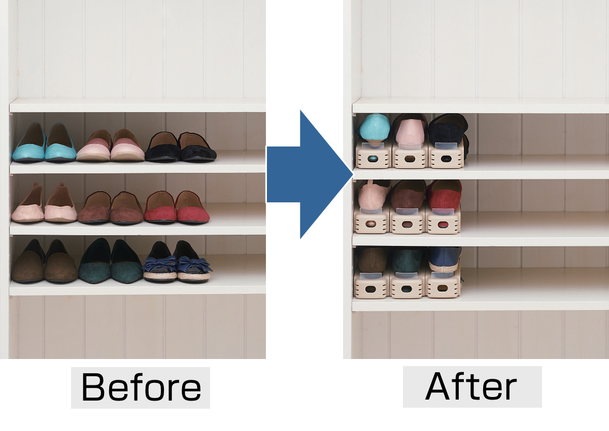 | 注意事項 | ※お届けの際、ストッパーは商品本体または台紙に付いています。間違えて捨ててしまわないようご注意ください。 ※靴のデザインやサイズ、下駄箱によっては、ご使用いただけない場合があります。 ※無理なご使用は、靴の変形や製品の破損の原因となります。 ※商品ページ内には別の商品を含む画像を使用しています。 |