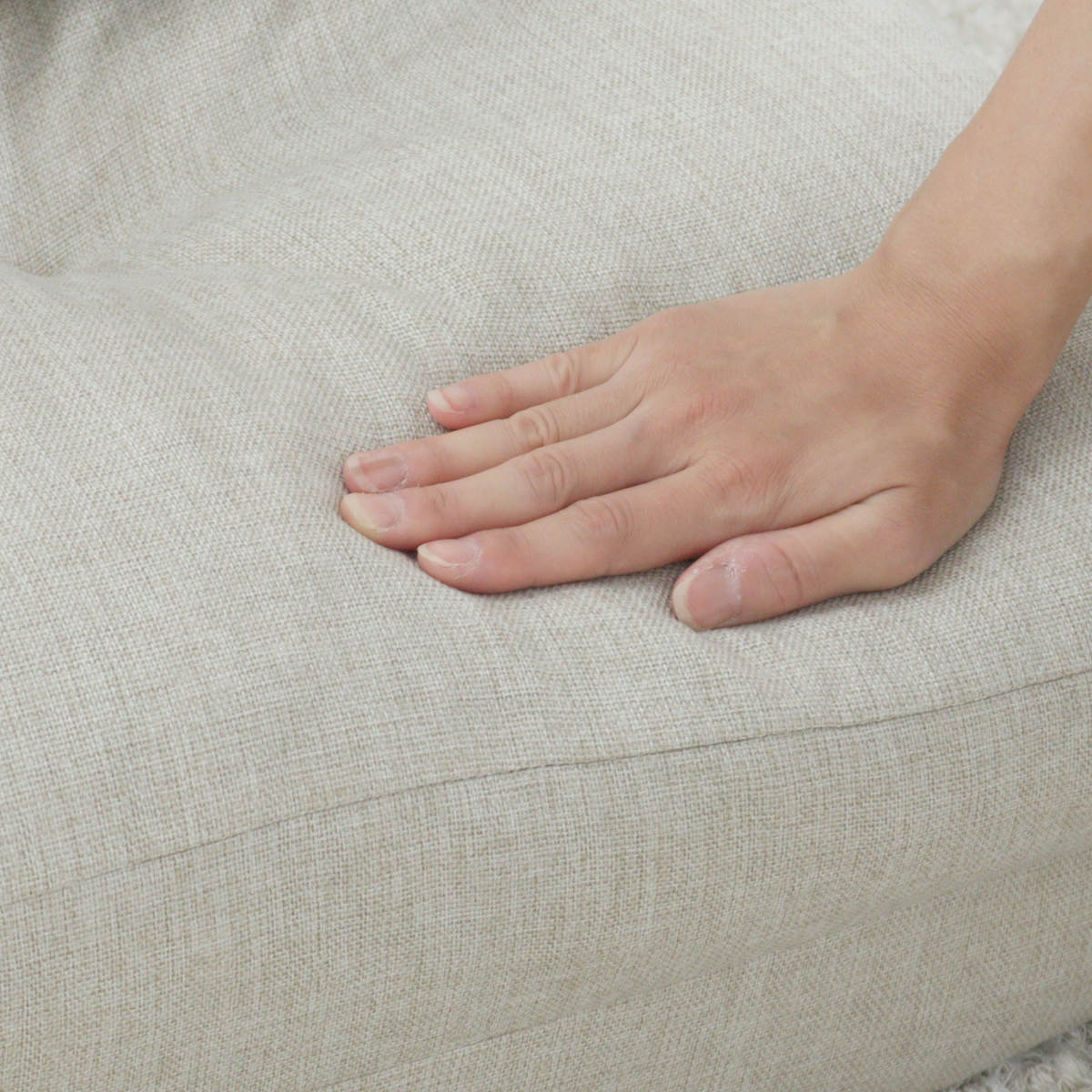 フロアソファとしての定番使用。長時間座っても疲れにくい厚みのある座面が安定感のある使い心地です。コンパクトなサイズ感なのでワンルームにもおすすめです。