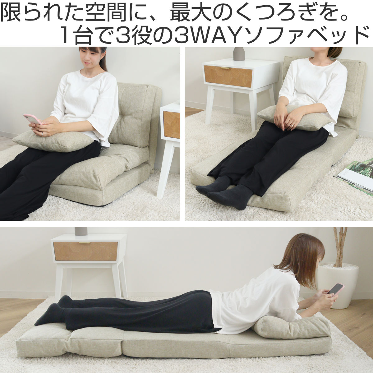 ●3つのスタイルが楽しめるロータイプのソファベットです。