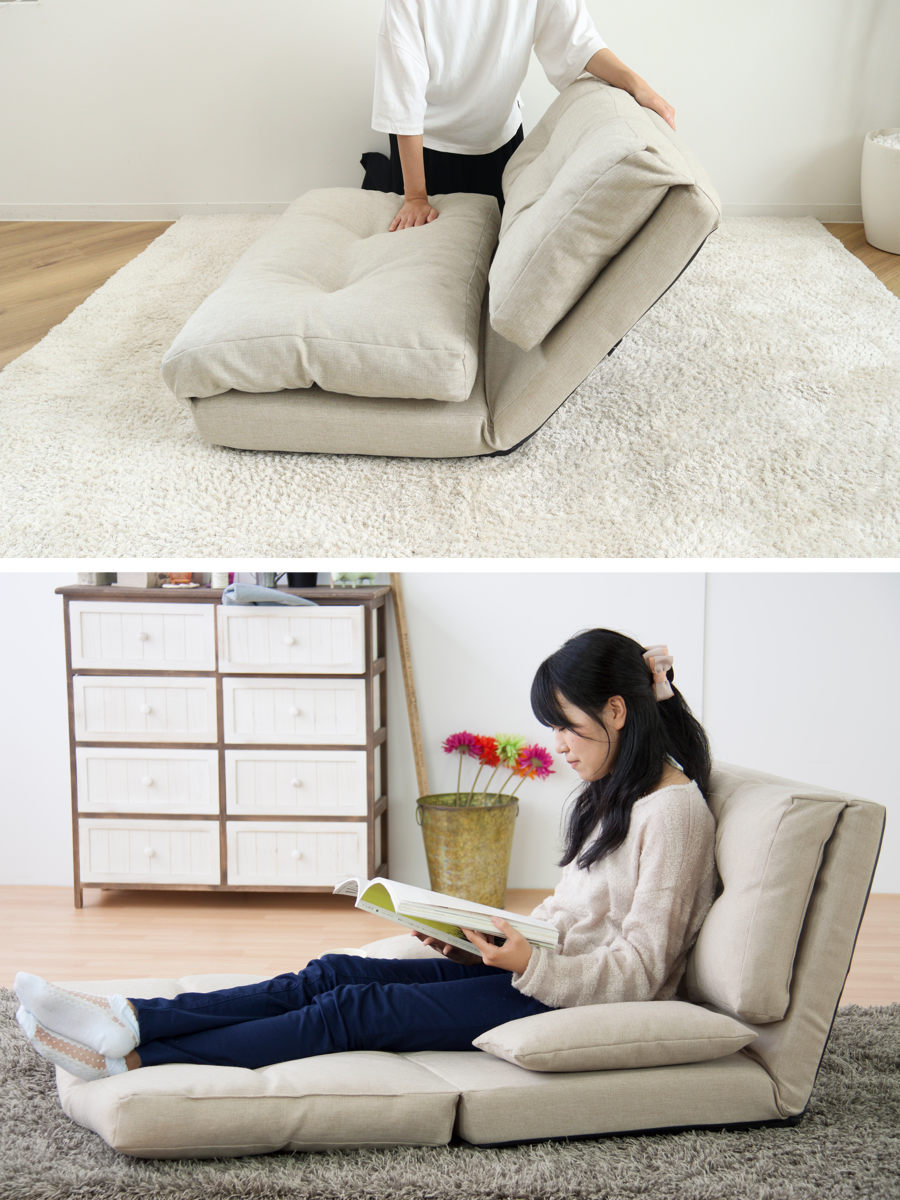 ソファ・カウチ・ベッドスタイルと3つのスタイルが楽しめるロータイプのソファーベッドです。2人でも座れますが、普段は1人でゆったりしたい方ににおすすめです。背もたれの角度も変えられるので、お好みのスタイルでリラックスして過ごせます。