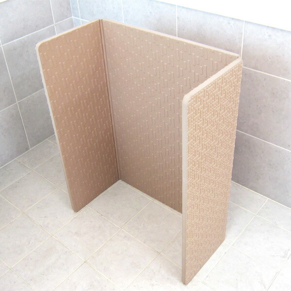 「コ」の字に立ててカラッと乾かせる●保温性の高いEVA樹脂を使用した、折りたたみタイプの浴室マットです。