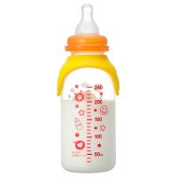 ●哺乳瓶には着脱式の耐熱シリコンカバーが付いているので、調乳時のママの手を熱から守ります。
