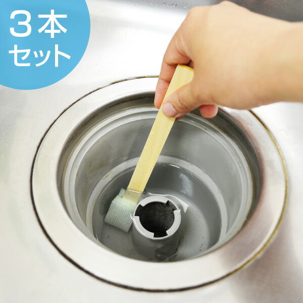 表面の無数のブラシが、細かい汚れもしっかりカキ取る!手を汚さずに奥の汚れもしっかり落とせる便利アイテムです。ブラシ状の素材が排水口にたまったヌメリ・水あか汚れをからめ取ります。柄付なので手を汚さずに、しっかり汚れを落とせます。蛇口まわり、タイル目地、サッシ・ドアレールの溝などにもご使用いただけます。【商品詳細】 サイズ/約縦20.5×cm 内容量/3本入 材質/ブラシ部分:ポリプロピレン、ポリエステル、ポリウレタン 柄:木材 生産国/日本製 備考/※プラスチックの柔らかい面や塗装面などへの使用はキズをつける場合があります。あらかじめ目立たない部分でお試しの上、ご使用下さい。《浴室用品 スポンジ クリーナー キッチン シンク洗い》
