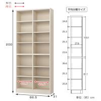 | サイズ | 約 幅86.5×奥行31×高さ200(cm) 棚板:約 厚み1.7cm |