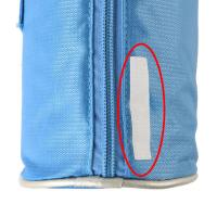 | 傷付き防止の面ファスナー ファスナーの引っ掛かりやカチャカチャと音を立てるのを防ぐ面ファスナー付きです。 | 出し入れしやすいファスナー カバーのファスナーは底まで下して大きく開くことができ、ボトルの出し入れがしやすいです。 |