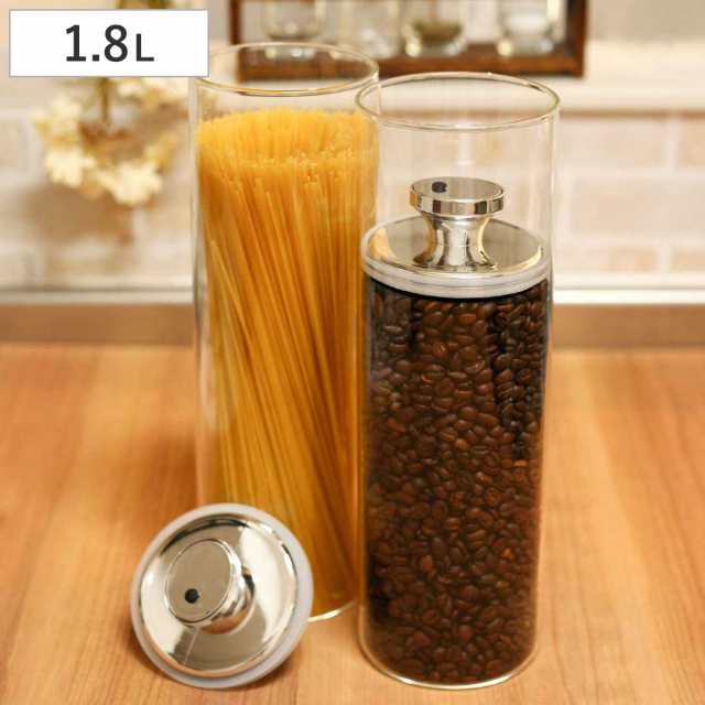 余分な空気を減らして酸化を防止し、湿気を嫌う茶葉やパスタ、コーヒー豆が傷みにくいガラス容器です。