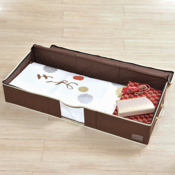 着物のクローゼット収納が叶う両サイドには持ち手がついているので、クローゼットの上段や、ベッドの下に収納しても楽に引き出すことができます。前面には透明窓が付いており、中身の確認が一目でできます。開閉は全開できるファスナーで、出し入れもラクラク。