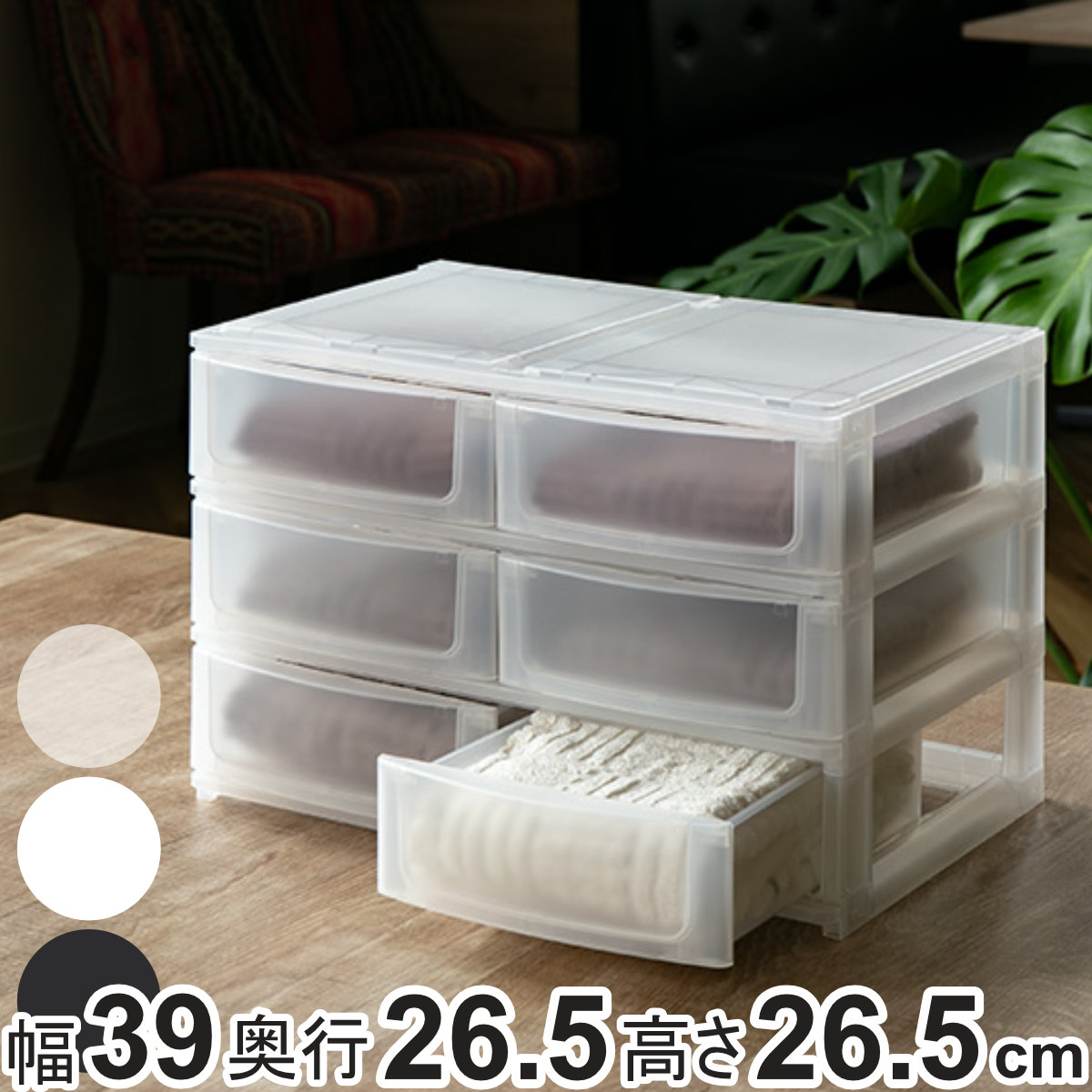 | サイズ | 約 幅39×奥行26.5×高さ26.5(cm) 引き出し内寸:約 幅15.8×奥行23.2×高さ6(cm) |