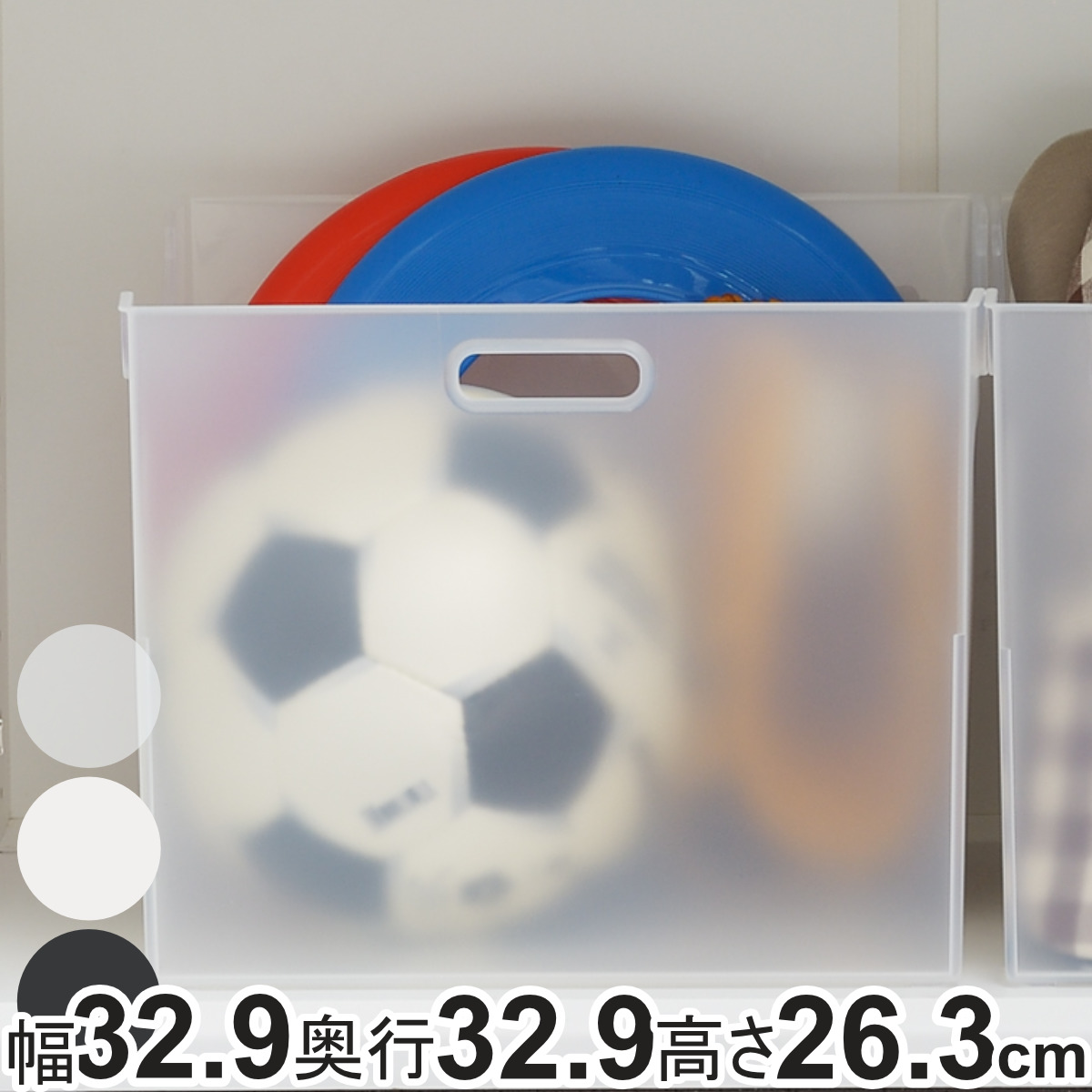 同シリーズを組み合わせて自分仕様にカスタマイズを楽しめます。くもりガラスのように中がふんわり見えるクリア、清潔感あふれ収納物をかくせるホワイト、空間を引き締めるブラックの3色展開です。シリーズでそろえることで、統一感が生まれすっきりとした印象になります。