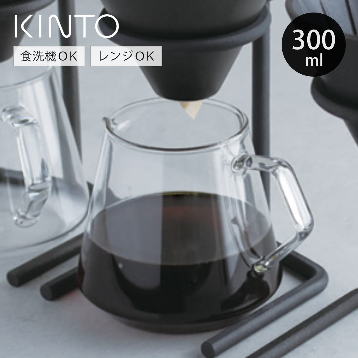 美しく洗練されたフォルムのコーヒーサーバー 300mlシンプルでスタイリッシュな耐熱ガラス製コーヒーサーバーです。透明なので、コーヒーが落ちる様子も愉しめます。