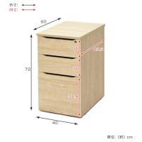 | サイズ | 外寸:約 幅40×奥行60×高さ72(cm) 引き出し有効内寸:奥行49.3×高さ{上・中16、下35.4}(cm) 重量:約33kg |