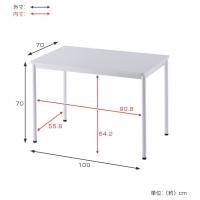 | サイズ | 外寸:約 幅100×奥行70×高さ70(cm) 内寸:[足元空間]幅90.8×奥行55.8×高さ64.2(cm) その他:[天板]厚み1.8、角半径3/[脚]直径3.2(cm) |