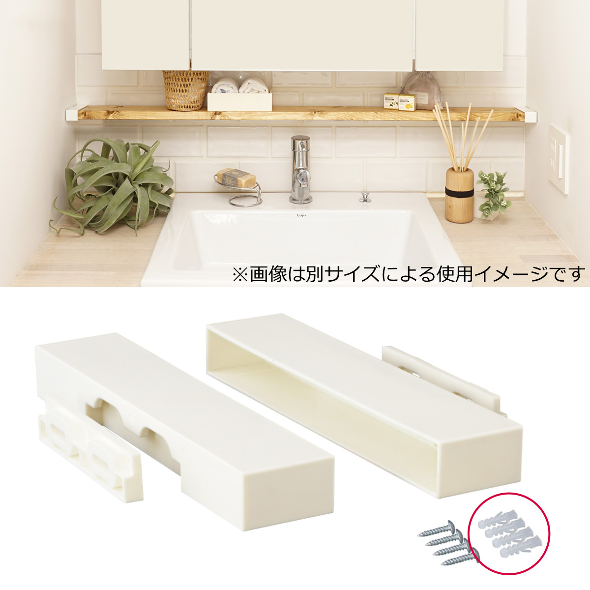 | 注意事項 | ※木材は付属しておりません ※商品ページ内には別の商品を含む画像を使用しています ※取り付け寸法から20mm短い1×6材を用意してください ※できるだけそりや曲がりの少ない1×6材を使用してください |