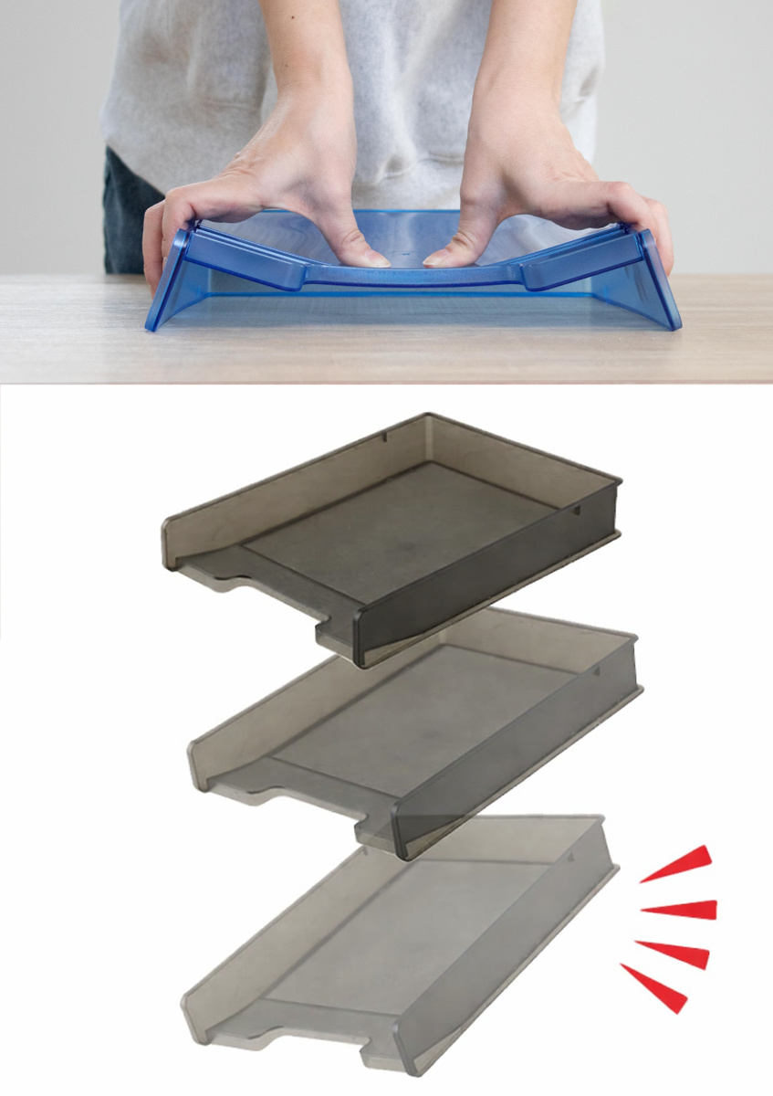 ファイルトレーは、プラスチックの中でも耐衝撃性に優れたポリカーボネート製です。落としても割れにくく、安心してお使いいただけます。