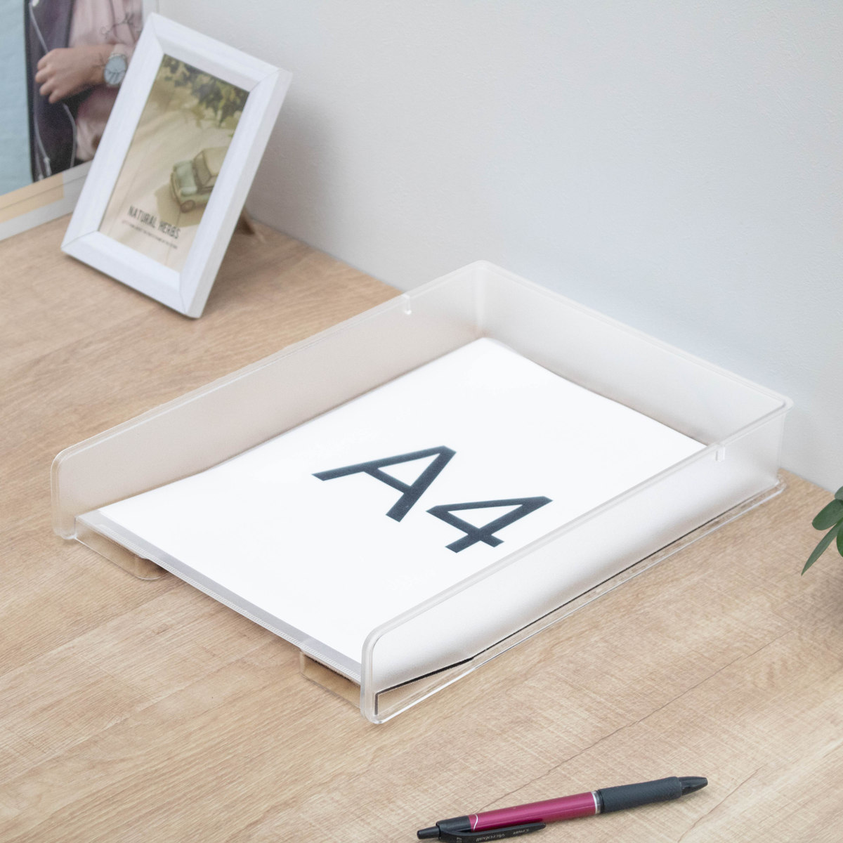 ●デスク周りの書類やプリントをすっきり整理できるA4対応のファイルトレーです。