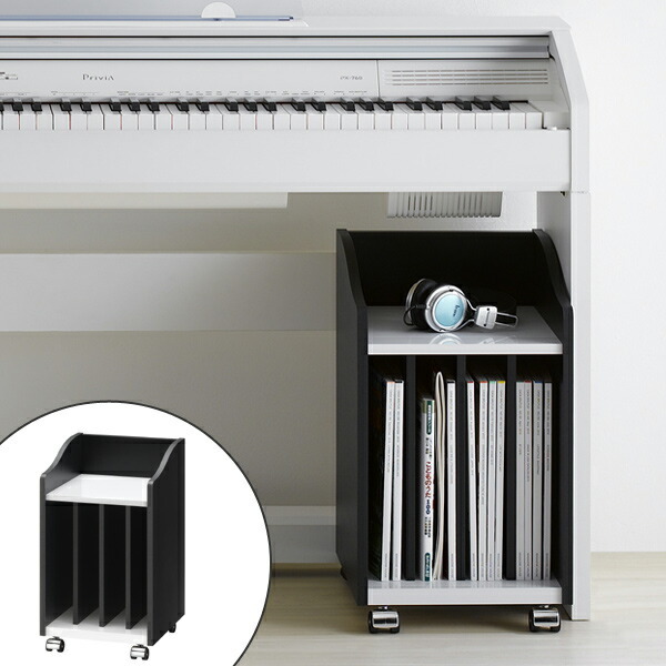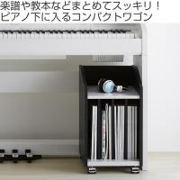 | 移動に便利なキャスター付き 普段はピアノの下に収納しておいて、使う時だけサッと引き出して使えます。 | ピアノに馴染む鍵盤カラー 黒い部分はマットな質感、白い部分は光沢のある素材を使用しています。ピアノ下に収納してもしっくり馴染むシンプルなデザインです。 |