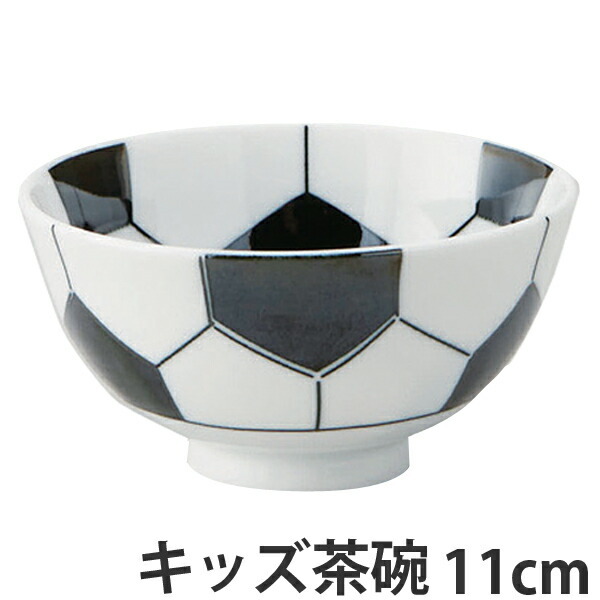 サッカー好きに♪サッカーボール柄の磁器製茶碗 11cmスポーツ好きな元気なお子様におススメしたいサッカーボール柄の茶碗。表側も内側もサッカーボールの柄でサッカー尽くし。サッカーボール柄の茶碗で、残さず食べて逞しく育って欲しい。パパとママと同じおかずが食べれるようになったら大人と一緒の磁器製食器でちょっと背伸びしてみよう。