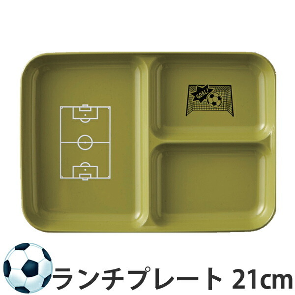 スポーツキッズに♪サッカー柄プラスチック製ランチプレート●サッカー大好きっ子におススメのサッカー柄の幅21cmお子様用プラスチック製ランチプレートです。