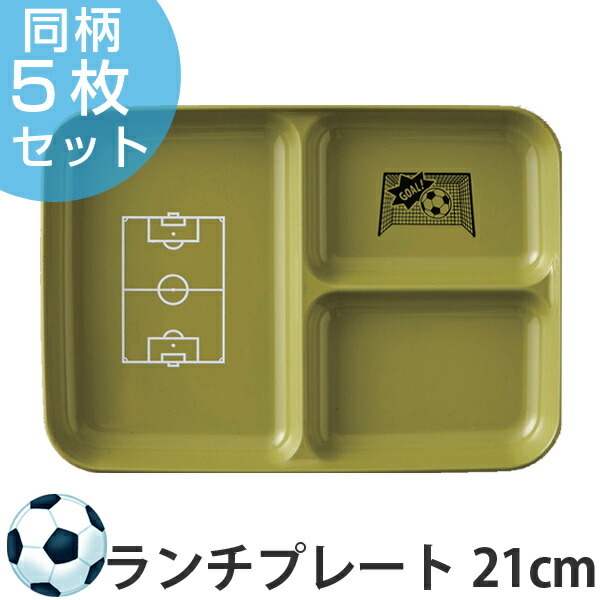 同柄5枚セット!サッカー柄プラスチック製ランチプレート●サッカー大好きっ子におススメのサッカー柄の幅21cmお子様用プラスチック製ランチプレート、5枚セットです。