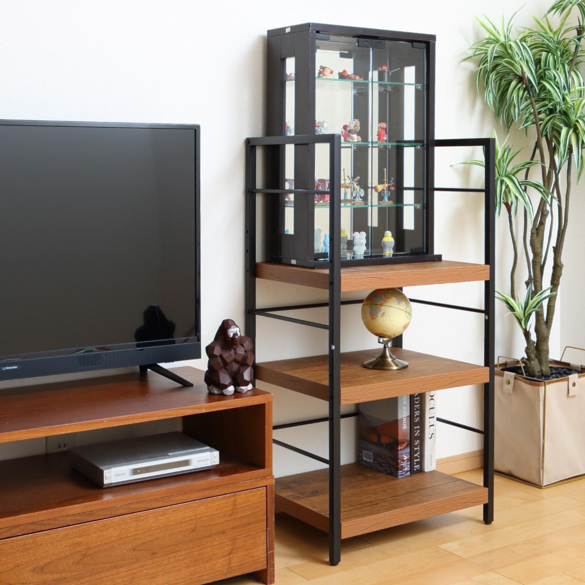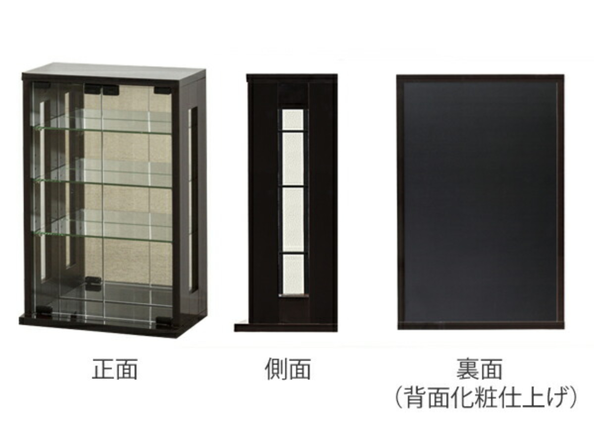 両サイドにもガラスをあしらい、横からもコレクションを眺められます。光を取り込み、飾るものをより明るく立体的に引き立てます。