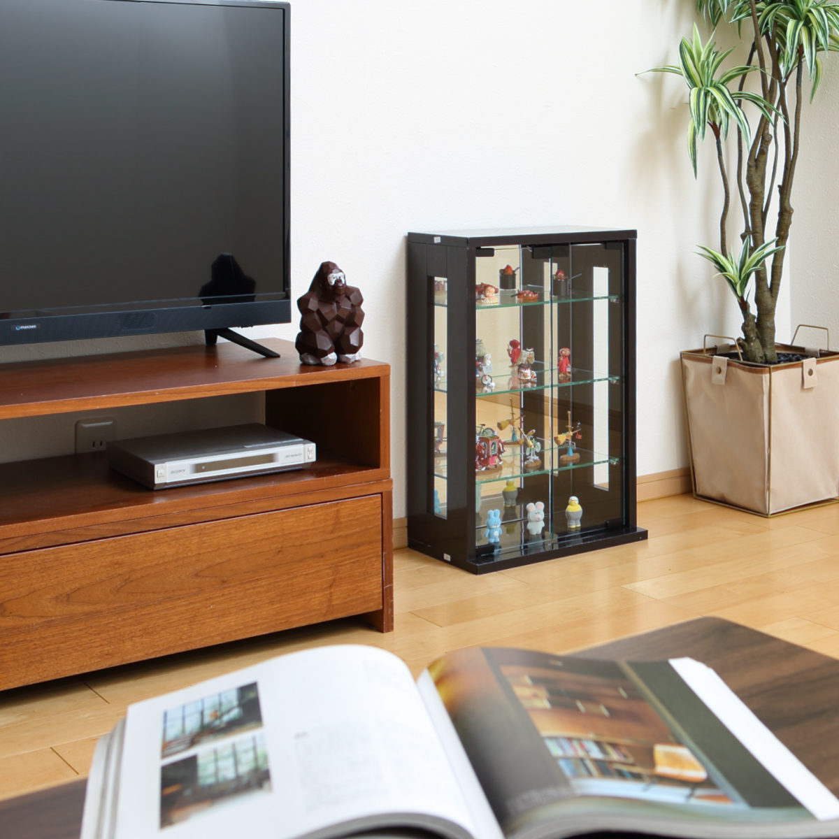 机やサイドボードの上に置けるコンパクトサイズのコレクションケースです。お気に入りのコレクションをホコリから守りつつ、美しくディスプレイしてくれます。