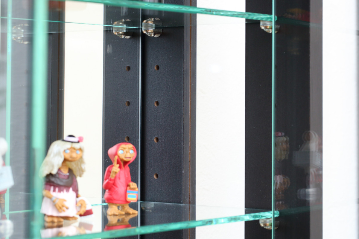 コレクションを取り出しやすい観音開きの扉です。マグネットプッシュ式なので、ガラス面に触れずに開閉できます。