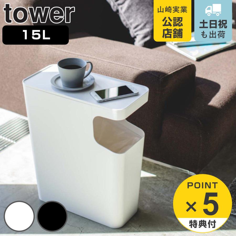 特典付き 山崎実業 tower ダストボックス&サイドテーブル タワー ( 4903208039888 タワーシリーズ ゴミ箱 15L サイドテーブル 398 ごみ箱 15リットル )