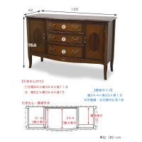 | 熟練の職人技術である象嵌細工 材木の表面を彫り込み、色の異なる飾り木を埋め込んで1つの模様を表現する高度な技術が施されています。 | キュートな猫脚と優美な曲線 通常よりも細い猫脚は柔らかくかわいらしい表情を出しています。また、フロントラインの曲線は上品でやさしい印象を与えてくれます。 |