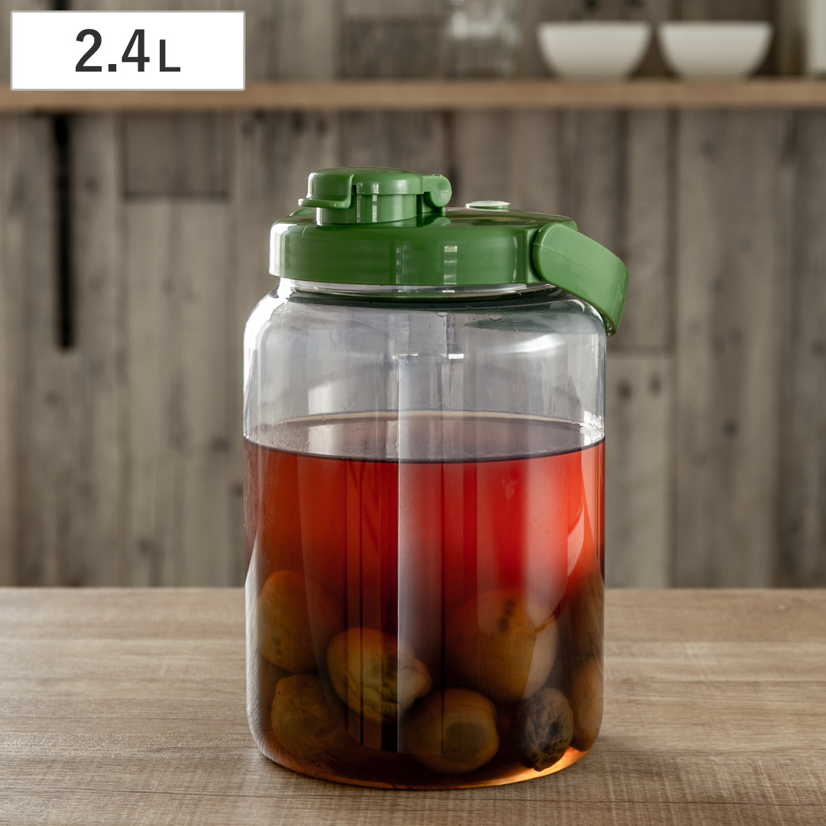 果実酒・酵素シロップ作りに適したPET素材で出来ている2.4Lの容器です。お酢が使えるので、らっきょう漬けにも使えます。