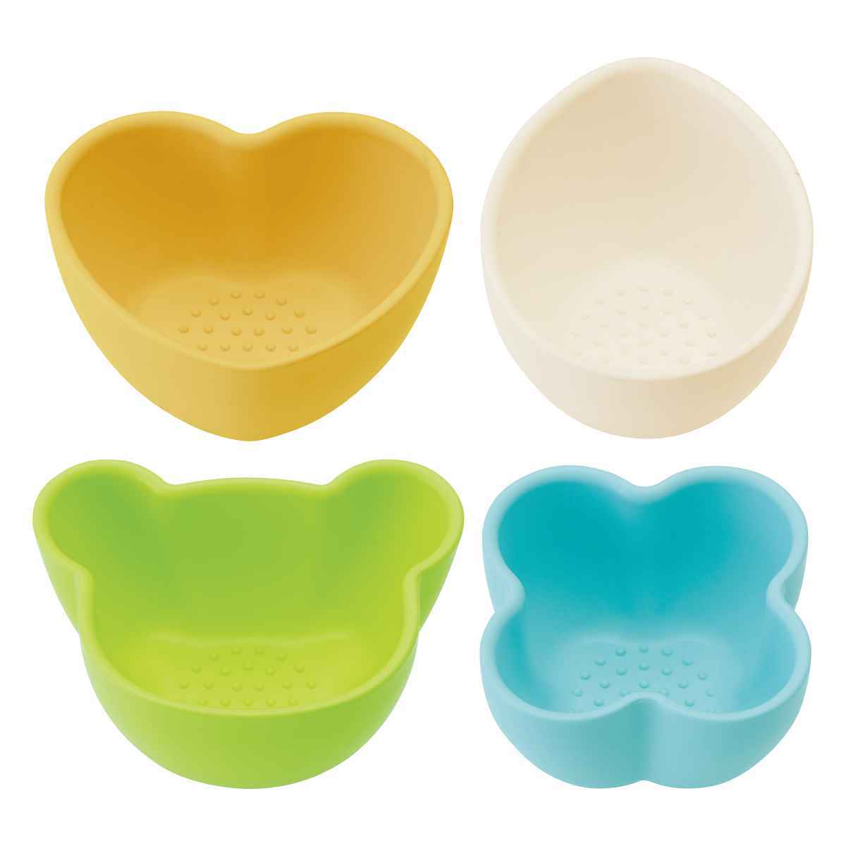 離乳食を盛り付けるのにピッタリなカラフル小鉢離乳食初期の少量の食材を盛り付けるのにピッタリな小鉢です。お子さまに色々な食材を食べれるようになって欲しいと、少量で品数が多くなる離乳食にちょうどよいサイズ感です。食材ごとに分けて盛り付けられるので、食材同士が混ざることなく、素材の味をしっかり覚えてもらうことができます。ハートやくまなどの可愛い形とカラフルなカラーで、並べるだけで楽しい食卓になります。離乳食が終わってからもワンプレートご飯などの盛り付けに使うと、簡単に可愛く仕上げることができます。