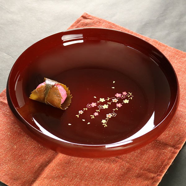 溜色のツヤと上品な桜が魅力古くは貴族だけが使うことを許された色合いである溜色で仕上げています。落ち着いたツヤのある溜色に、上品な桜の花が描かれており、お菓子や果物を引き立たせます。