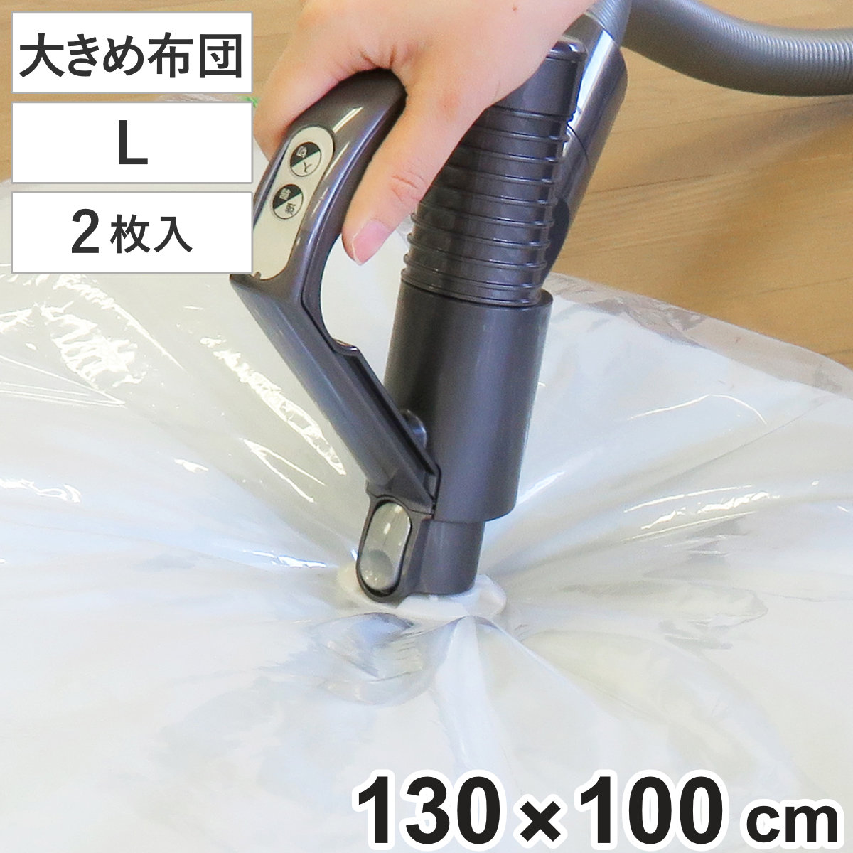 凸型吸引口も使える、自動ロックで手間なく簡単に圧縮●かさばる布団収納のお悩みを解決してくれる圧縮パックLです。