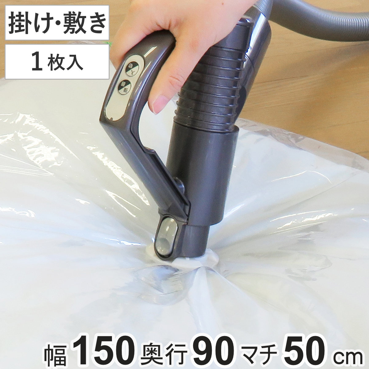 かさばる布団や、アウターなどの分厚くて場所をとる衣類の収納に関するお悩みを解決してくれるのがこの圧縮袋です。吸引スピードがアップした圧縮袋を掃除機で吸引するだけで、かさばる布団もあっという間にぺったんこになります。布団一組が1枚に収納できるので、お客様用布団の収納などに便利です。空いた空間を新たな収納スペースとしてお使いいただけます。