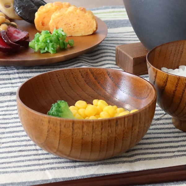 天然木のぬくもりと優しさが感じられる、小さめサイズのおかず椀●木目の風合いが美しい天然木漆塗りのお子様用おかず椀です。