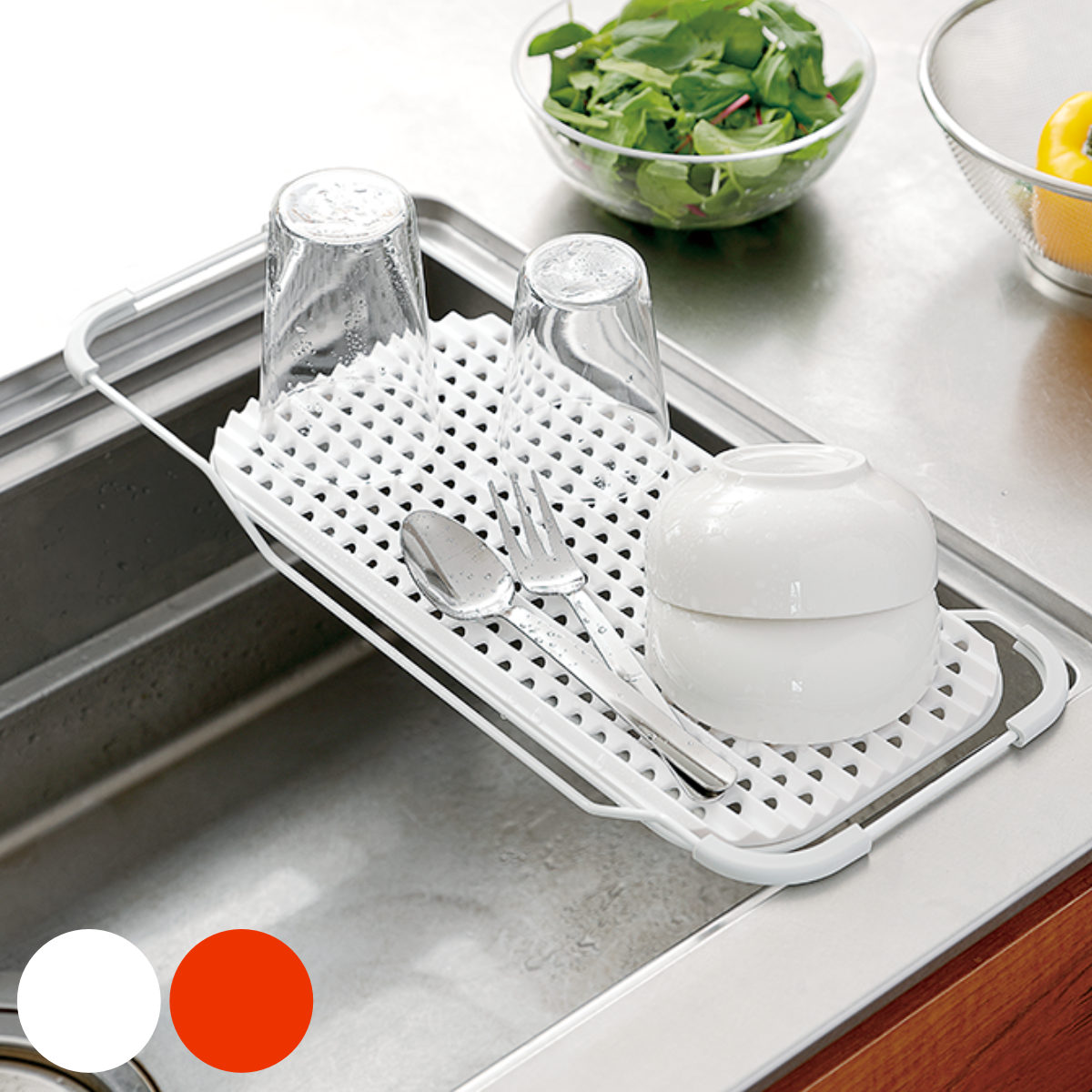 ●水切り用の穴が空いていて、シンクの上で水切りできるラックとして使用できます。