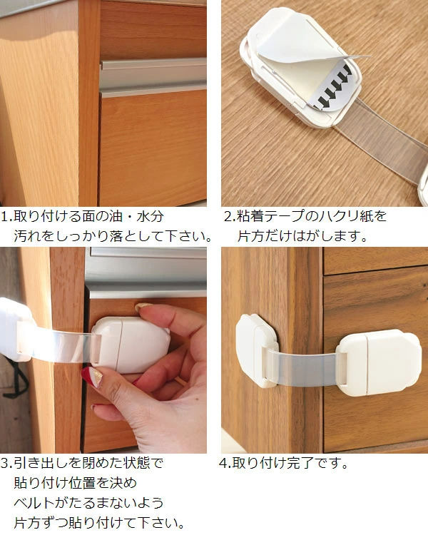引き出しをロック左右のどちらからでもロックができる多目的ミニストッパーです。小さなお子さまが開けにくいロック構造です。