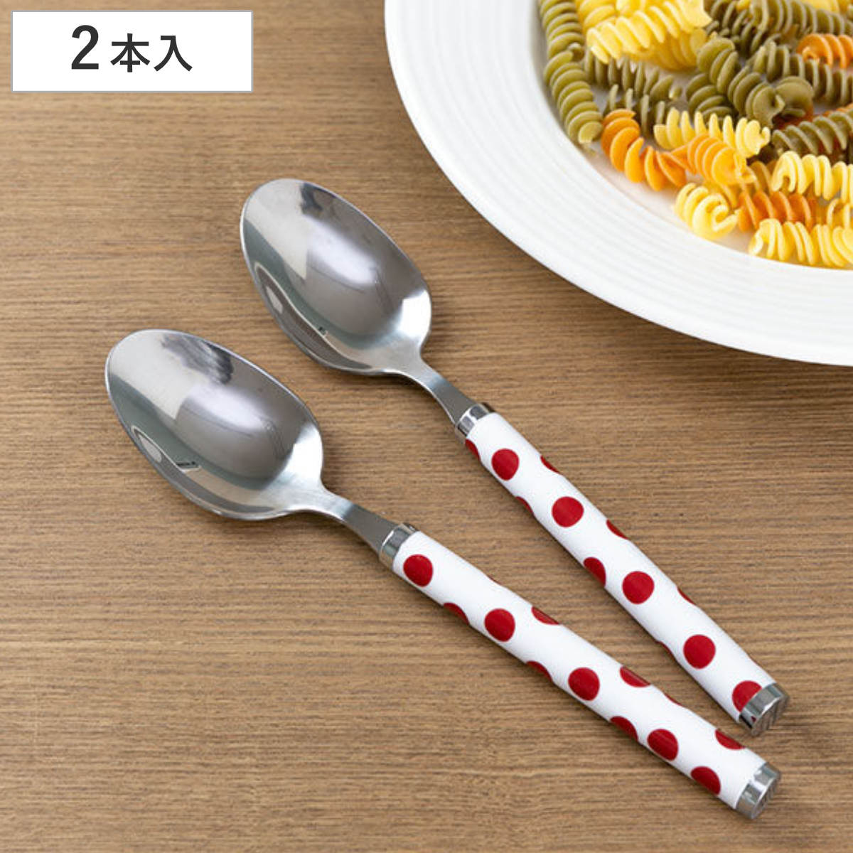 スプーン 大 セット 2本入り ステンレス ドット 赤 ( 洋食器 カトラリー 大きい 盛り付け カレー デザート )