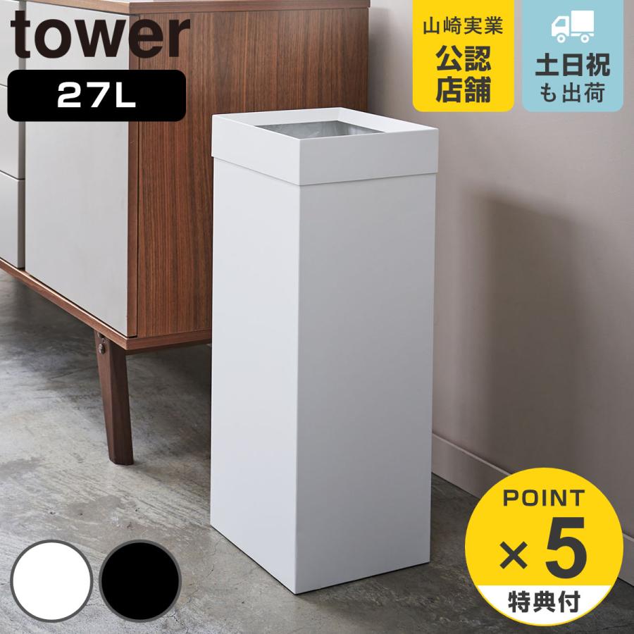 特典付き 山崎実業 tower トラッシュカン タワー 角型ロング ( 4903208044882 ごみ箱 27リットル 幅22.5 分別 スリム ダストボックス 長方形 袋が見えない )